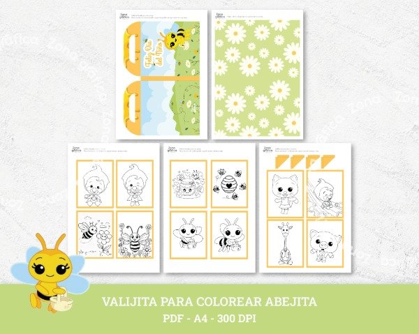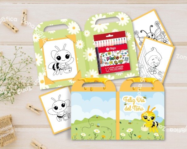 Valijita Abejita para colorear - Día del Niño